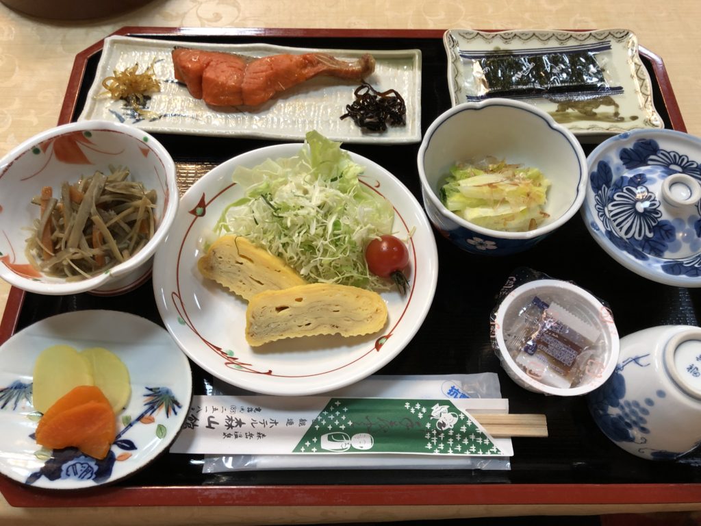 2日目の朝食は1階のレストラン。しっかりした朝食で2日目がスタート。ホテルでは朝食ブッフェ形式のを食べることが多いので、こういう朝食は久しぶり。鮭が分厚い〜。昨日の夜がヘビーだったので食べられるか心配やったけど、ペロリ。