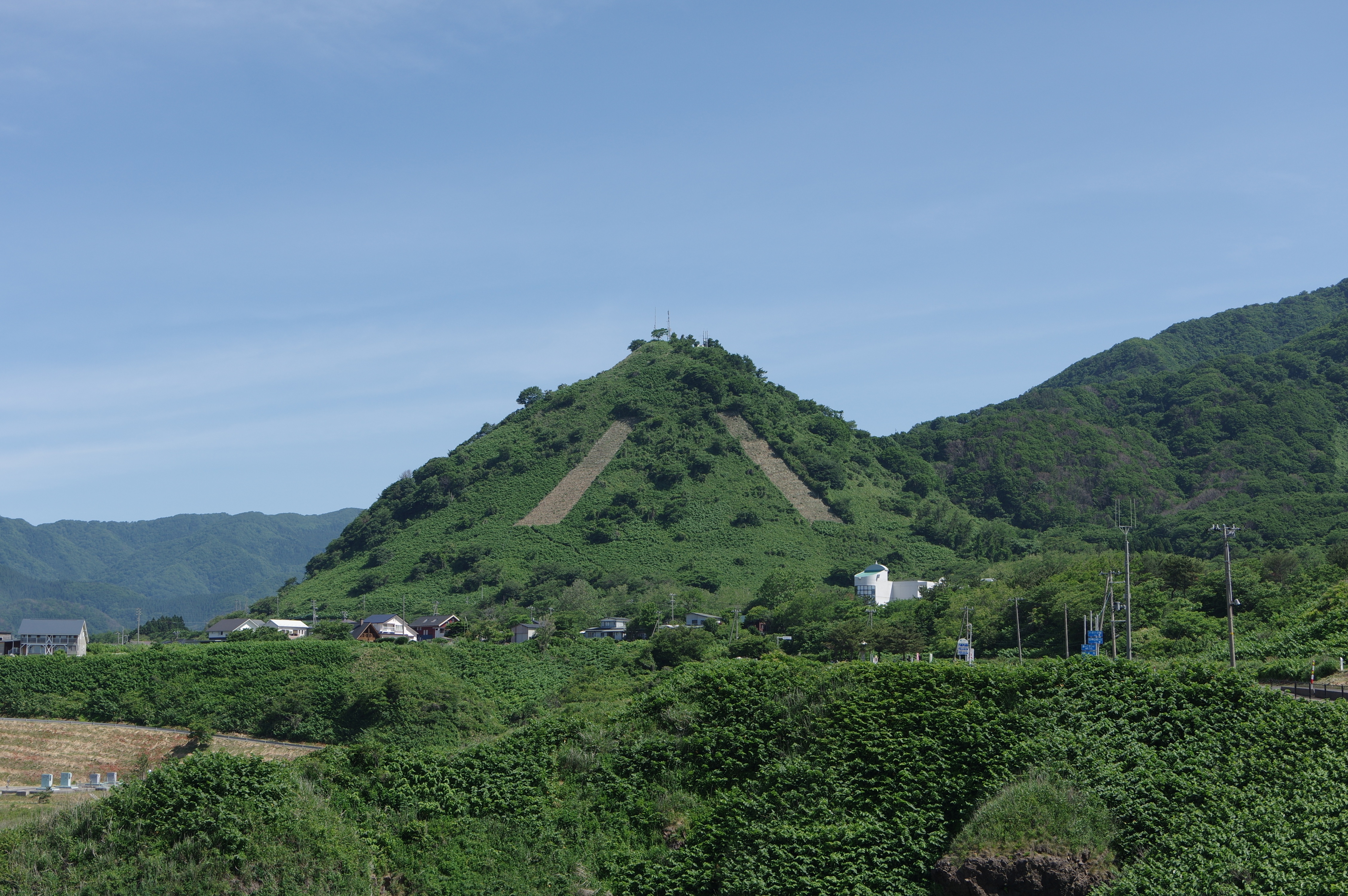 振り返ってみると、後ろにはハの字に木が切られた山が!なんやろこれ。かなり独特な感じでおもしろい。