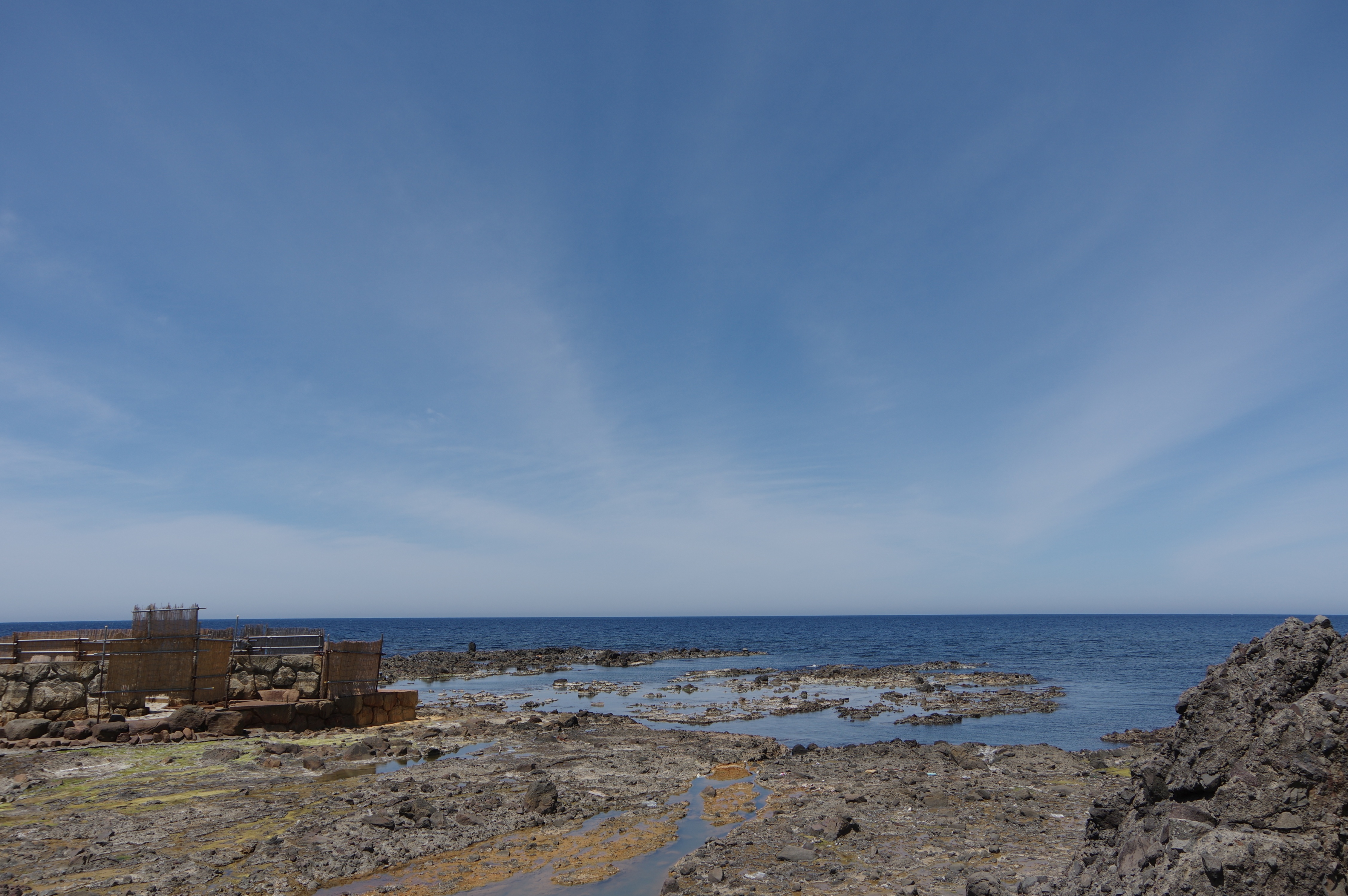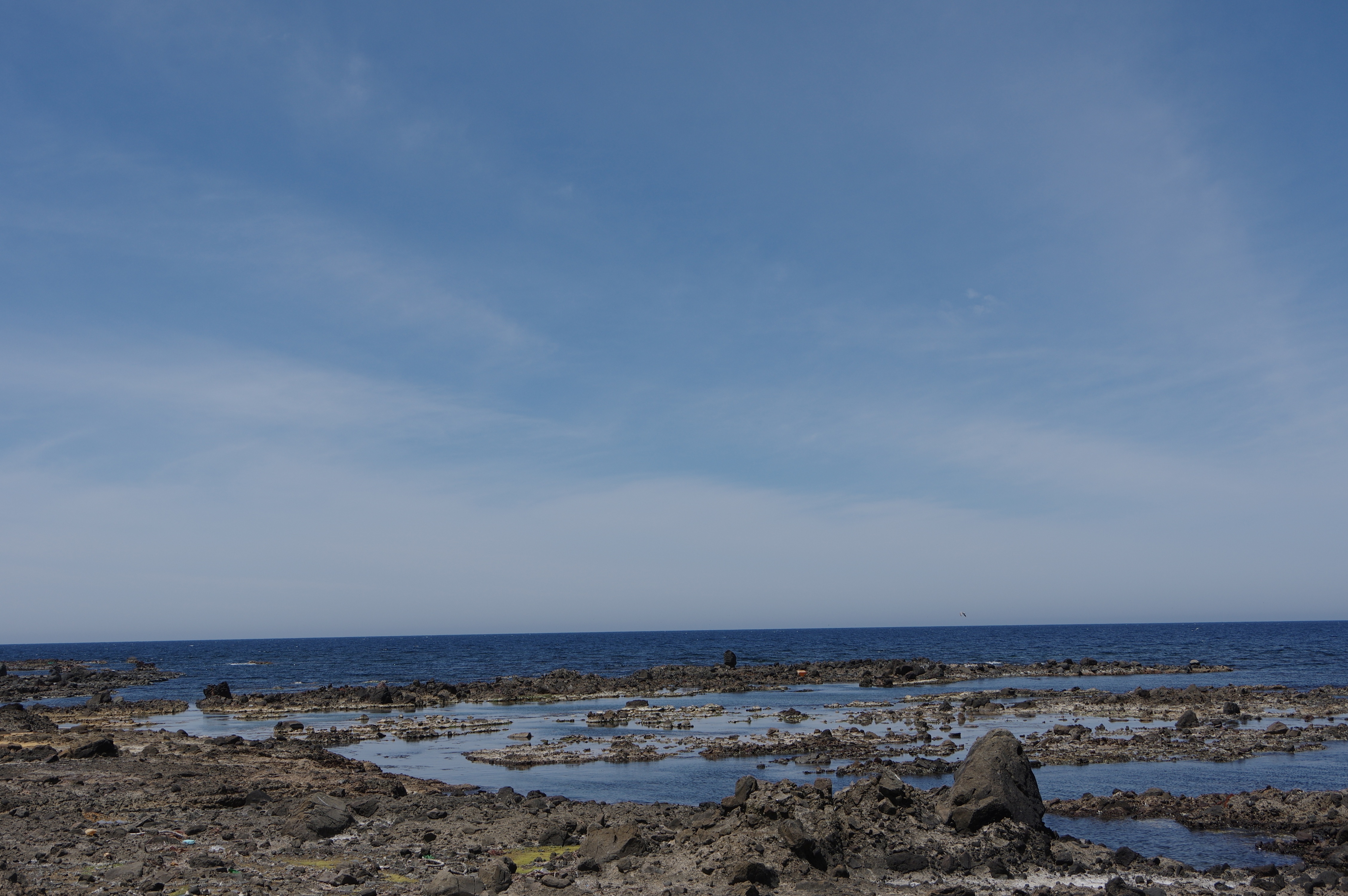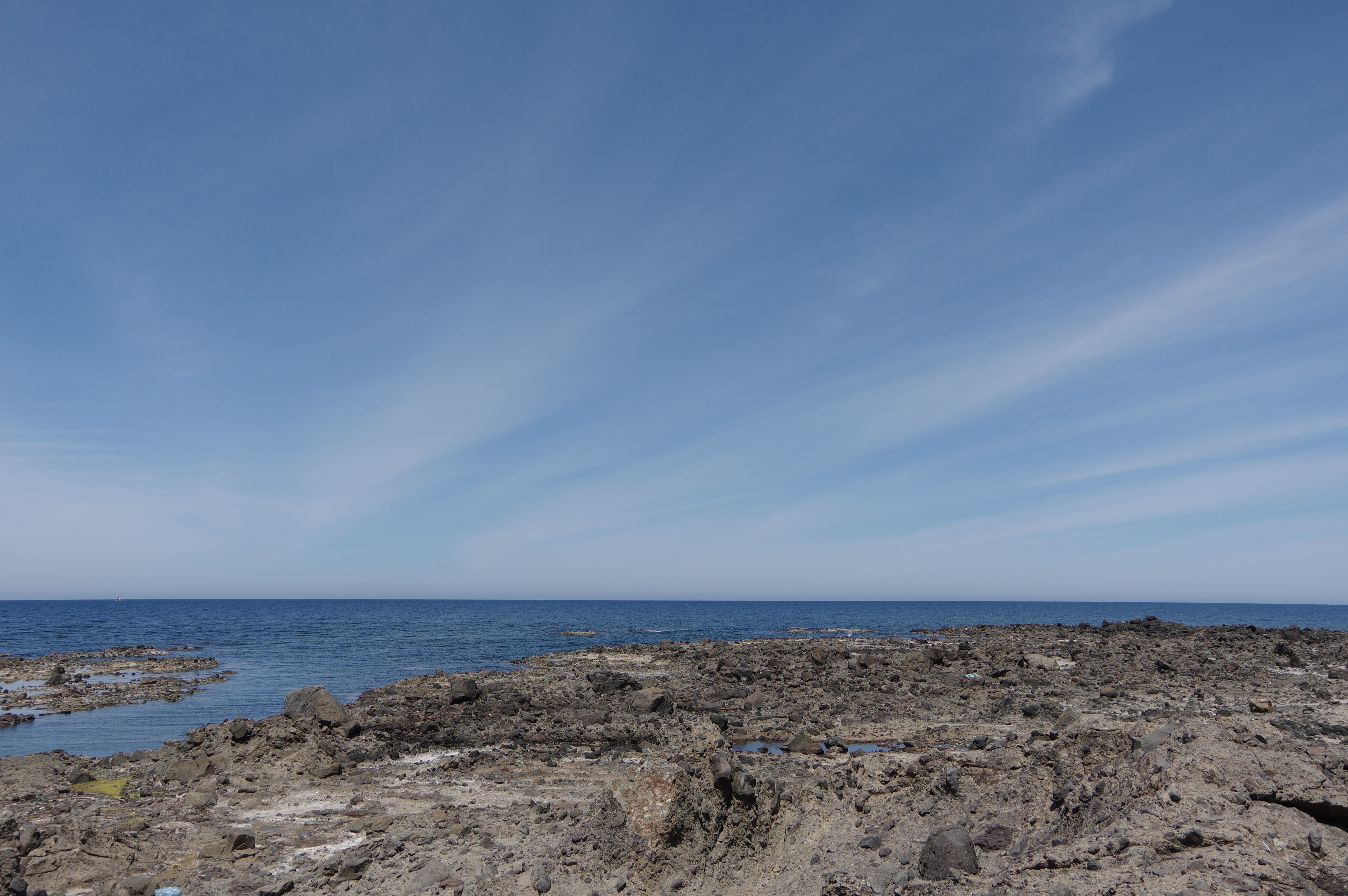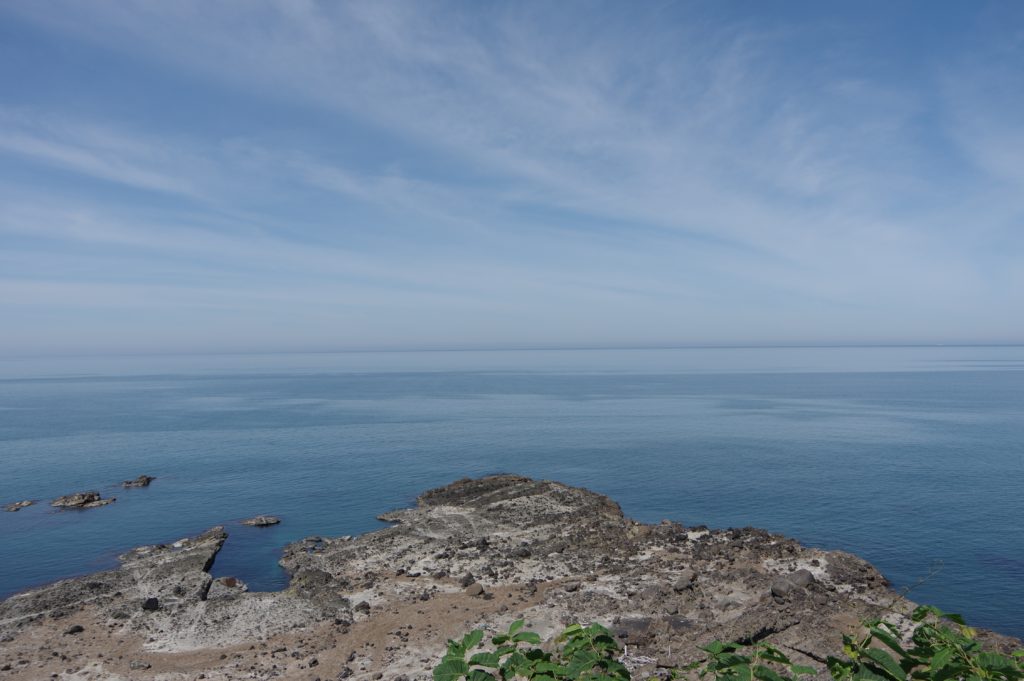 ここは岩のところが船の先端みたいになってて、舳先からから海を見てる感じになって素敵やわぁ。どこまでが海でどこからが空なんや〜。すごすぎる。水平線って普段見ることがないので、見えるとめちゃくちゃ気持ちが上がるわ。ず〜っと見てられる。