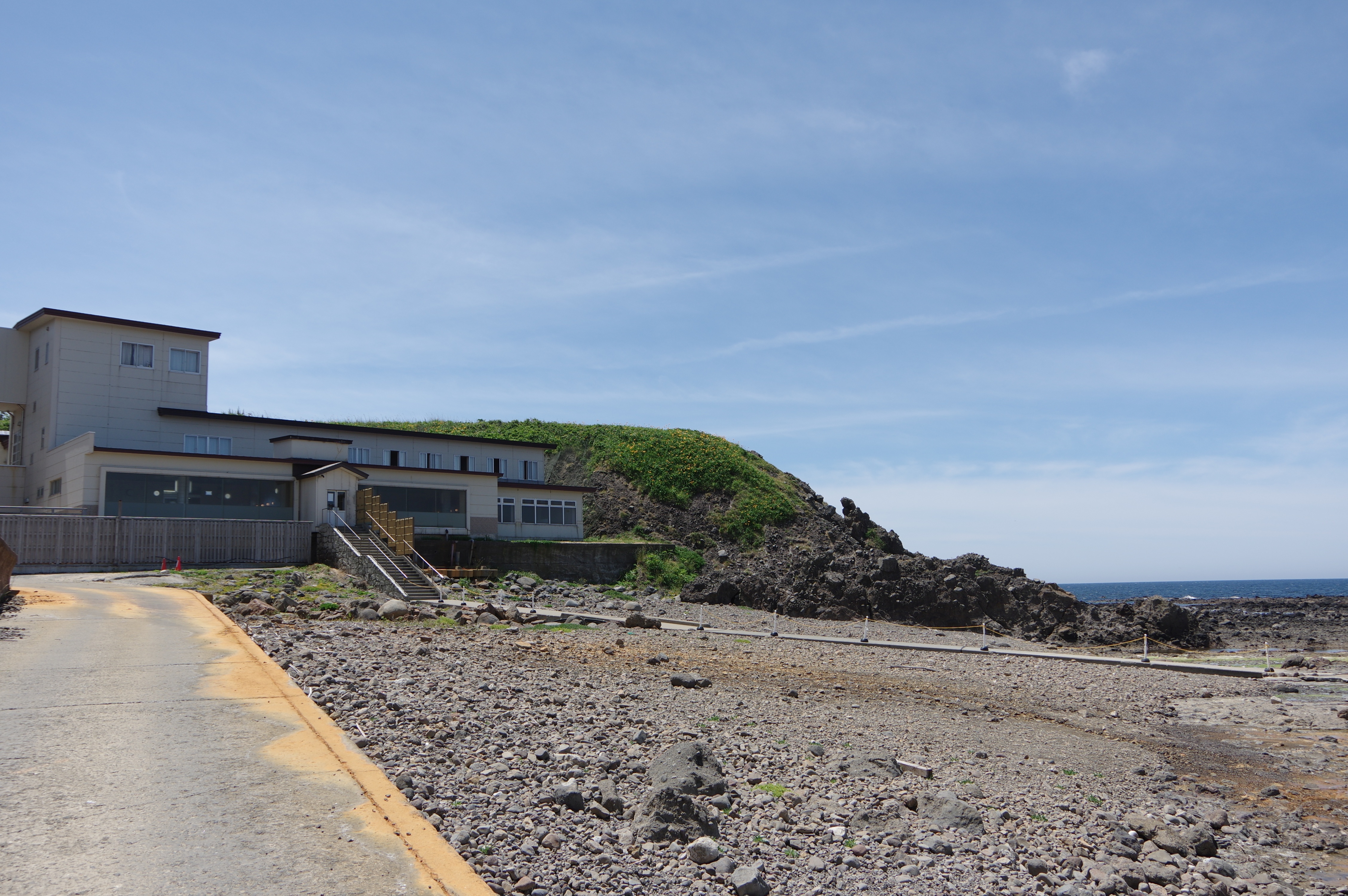お風呂からの撮影は禁止なので、内部からの景色が撮れないのが残念やけど、とてつもない絶景!湯船に深めにつかると海につかってる感覚。視界はほぼ海のみ。というか水平線。すぐ近くの岩場に海鳥がいたりして。いやぁ、これは素晴らしいですよ。ずっと入ってられる。むしろ出るのがイヤになる。