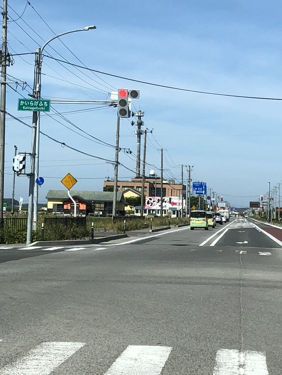 雪国なので信号機が縦型なんやなぁと思いつつ。ふと、縦型の時は右折信号は上なんやと。横型の時は右折は右やもんなぁ。