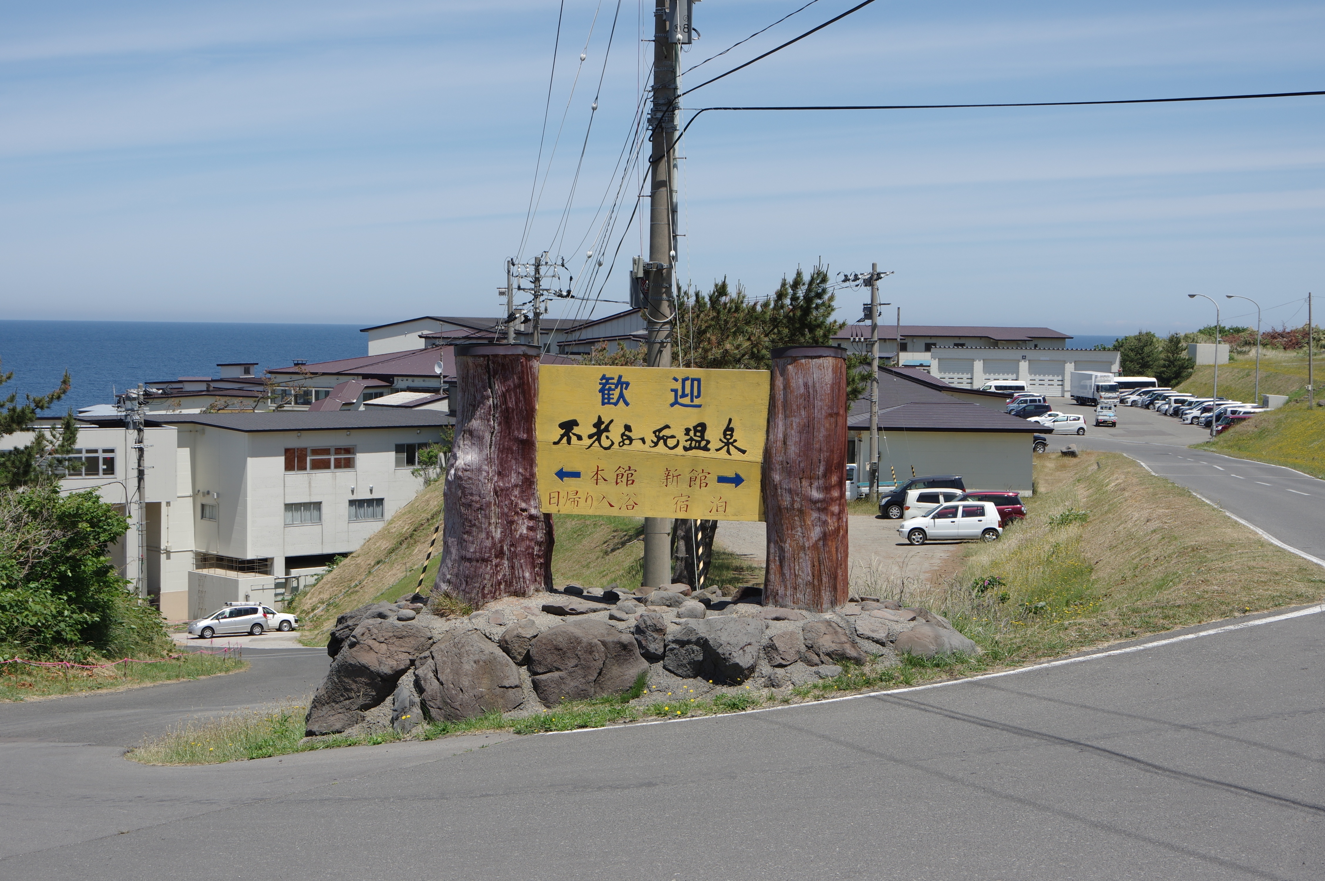 走ることしばしで、本日の目的地「不老ふ死温泉」に到着。