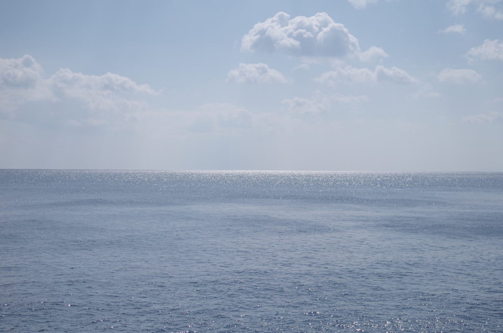 ナゾのパラダイスのある山道を越えた先に超絶景が!いやぁ、綺麗!この海のキラキラした感じと、雲の隙間からレーザービームみたいに光が降り注いでるのって大好きやねんなぁ(写真ではレーザービームがわかりにくいけど、、、。ホンマに綺麗。心が洗われるね。